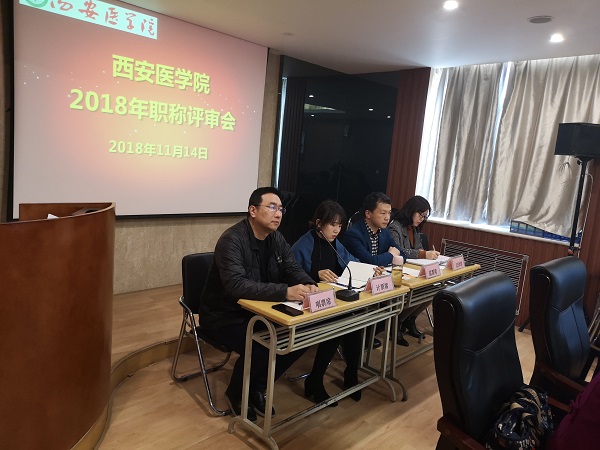 我校2018年职称评审委员会于20181114日上午830在行政楼217会议室顺利召开。按照《williamhill官网关于2018年职称评审工作的通知》(西医发〔2018129号)精神,我校晋升教授职称评审委员会在上午进行,教授职称评审委员会特别邀请了解放军空军军医大学、西安交通大学、陕西中医药大学、西安理工大学等校外9位专家作为评委,承担本年度教授评审委员会委员,教授职称评审委员会的评委全部由23名正高职称人员组成。晋升副高及其他专业技术职称评审委员会在下午进行,由我校16位正高职称人员和7位副高职称人员组成。